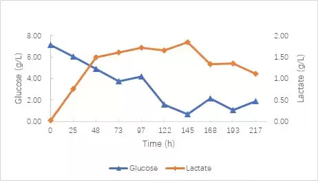 Figure 4 Glucose consumption curve and lactate metabolism curve during 239T cell culture.