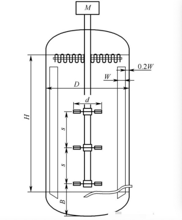 Installation of 4 to 6 pieces of baffle, can meet the full baffle conditions, the so-called “full baffle conditions” refers to the fermenter and then add the baffle and other accessories can play the role of the baffle, the stirring power remains unchanged, the basic disappearance of the vortex.