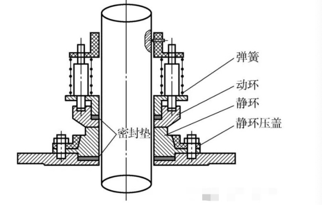 The movable ring is set on the shaft, and there is a sealing gasket inside to closely fit with the shaft, which can prevent the leakage between the movable ring and the shaft. The spring on the upper part of the dynamic ring presses the dynamic ring towards the static ring, so that the smooth end surface of the dynamic ring and the static ring are in close contact with each other to achieve the purpose of sealing.