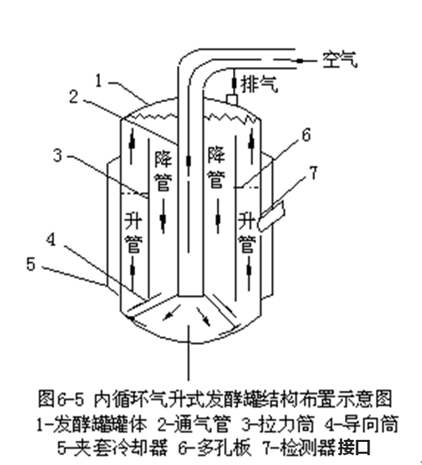 In addition, the device is also equipped with a ring pipe gas injector and so on. The basic structure of the internal circulation air-generated bioreactor is shown in Figure 6-5.