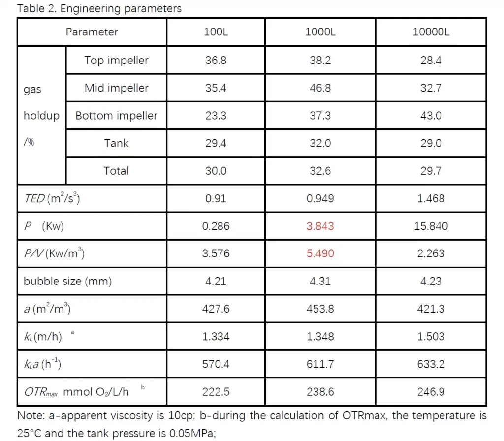 Table 2 compares and analyzes various engineering parameters in the reactor. Under the conditions of this design scheme, since there is no gas flooding in the bottom layer, the difference in gas content in each area is small and the gas is evenly dispersed. The effective powers of the three fermentation tank stirring paddles are 0.286, 3.843 and 15.840kW respectively, and the power per unit volume reaches more than 2kW/m3.